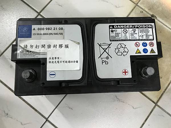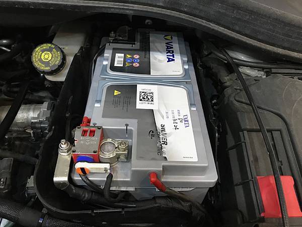 換下一顆壽命快所剩無幾的舊電瓶並裝上了一顆賓士原廠指定廠牌 VARTA F21 全新的 AGM 電瓶。
